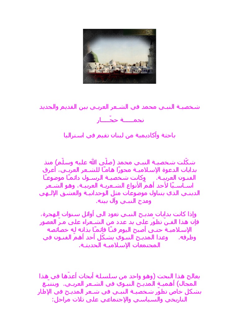 شخصيـة النبـي محمد في الشـعر العربـي بين القديم والجديد